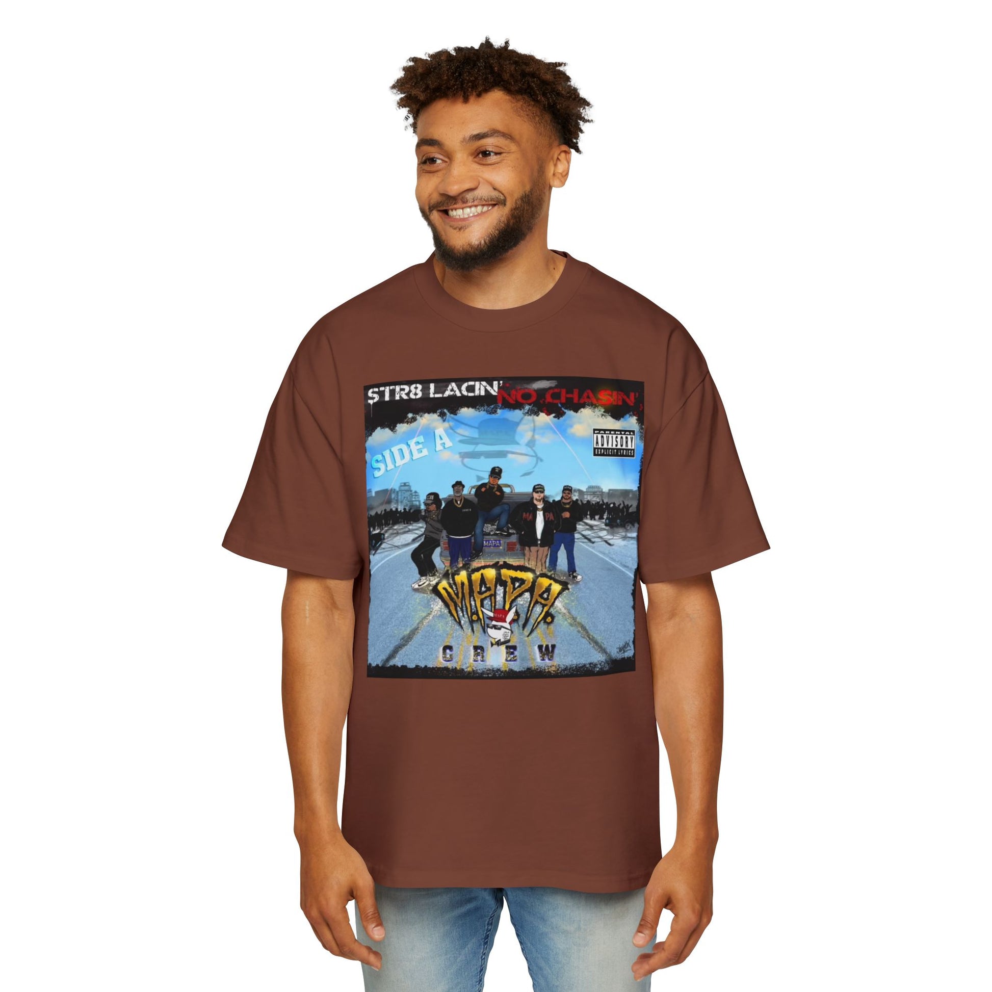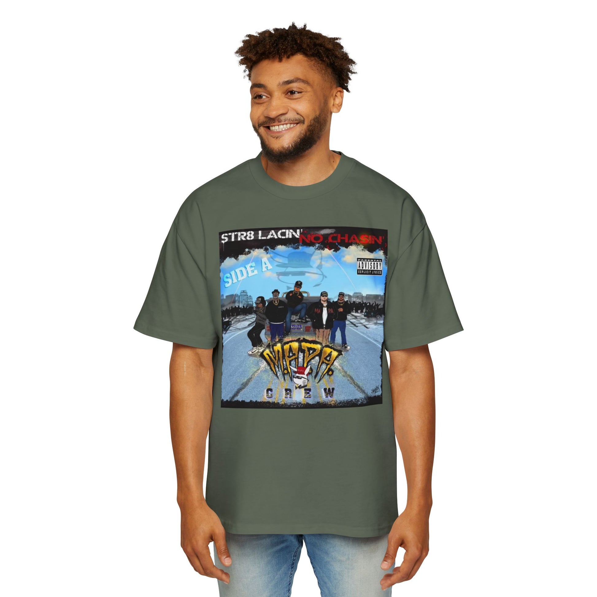 A relaxed, oversized tee built for everyday comfort and street-ready style. The midweight, carded cotton feels substantial without being stiff, while dropped shoulders and an intentionally roomy silhouette create that laid-back look that layers and moves with you. A bold, square graphic across the chest brings a retro hip-hop energy—scenes of a crew on a rooftop, vivid sky tones and graffiti accents—so the shirt reads like wearable nostalgia. Stitched details (double-needle hems and shoulder-to-shoulder tape) keep the shape steady wash after wash. Wear it with tapered jeans and sneakers or under an open flannel for an easy, lived-in vibe that nods to skate and street culture.